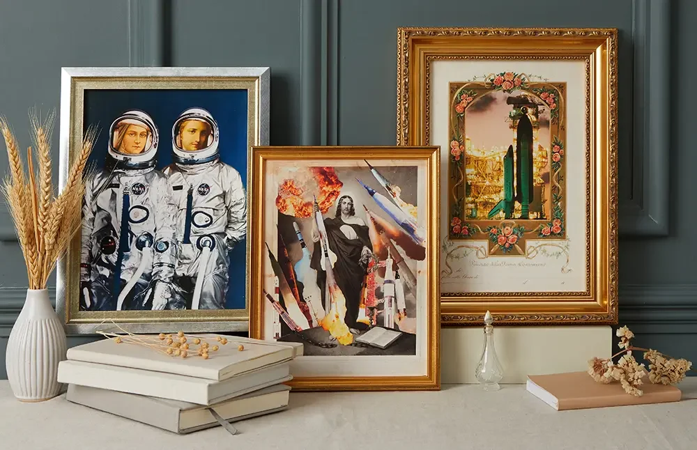 Museum-quality prints of hand-cut antique paper collages